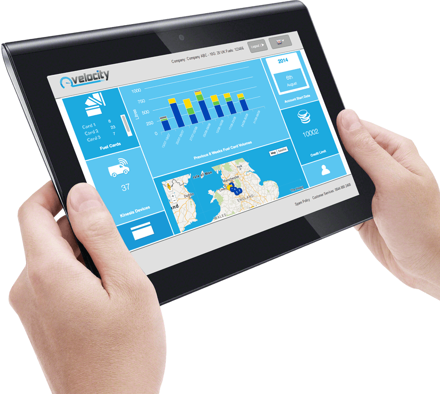 The Velocity dashboard provides a complete overview of your fuel cards, vehicles and costs, at a glance.